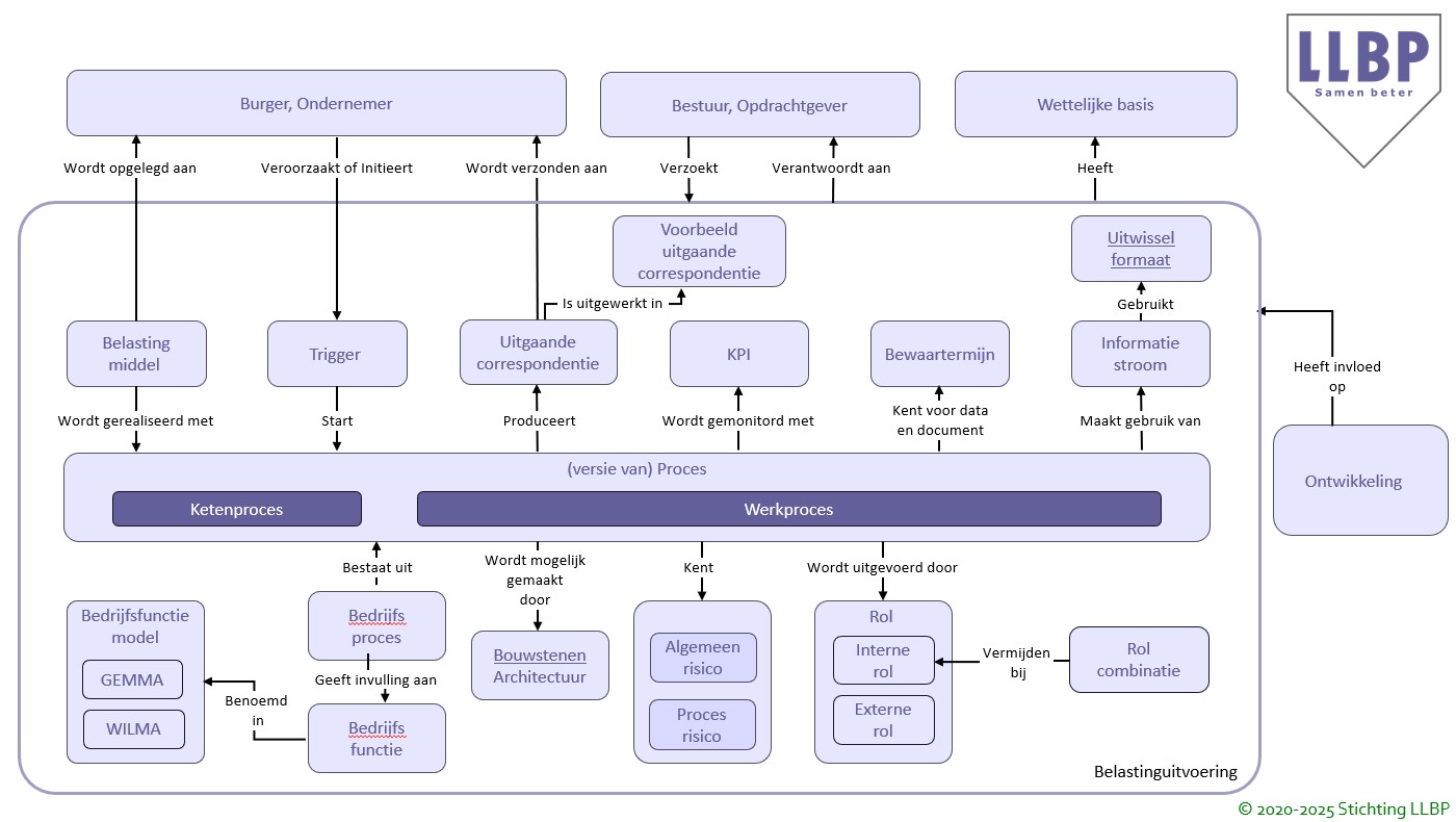 Op dit schema worden de producten weergegeven die Stichting LLBP heeft ontwikkeld in relatie tot de beschreven generieke processen. Deze producten zijn zorgvuldig ontworpen om te voldoen aan de behoeften van onze doelgroep en dragen bij aan het verbeteren van de processen.